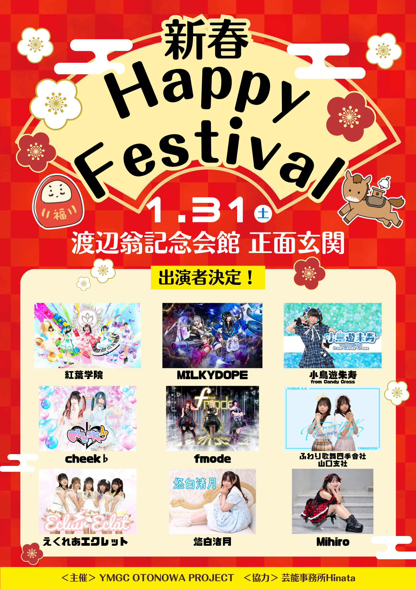 新春 HAPPY FESTIVAL 開催!! 2026年1月31日に渡辺翁記念会館・記念公園にて、新春 HAPPY FESTIVALを開催いたします!昼の部と夜の部の2部制となっており、催しもたくさん用意しております! クリック・タップで拡大 クリック・タップで拡大 事業内容 詳細はこちら 事業実績 詳細はこちら 出店スケジュール 詳細はこちら 備品レンタル 詳細はこちら